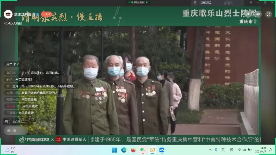 4月5日下午一点半,网上主题活动正式开始。首先,团支书介绍本次网上主题活动的目的和意义,组织同学们认真回顾祖国烈士的英雄事迹,认真聆听英烈故事,回顾峥嵘岁月,深切缅怀革命先烈丰功伟绩。接下来,团支书带领同学们观看“今天,为英烈献花”的主题慢直播,带领同学们更加深入的理解英烈事迹所蕴含的精神,并组织同学们以“英烈精神”为主题进行知识竞赛,总结学习英烈先进事迹对于当代大学生成长的积极意义,坚定理想信念。最后,团支书对本次团活进行了总结。到此,本次主题云团课圆满结束。